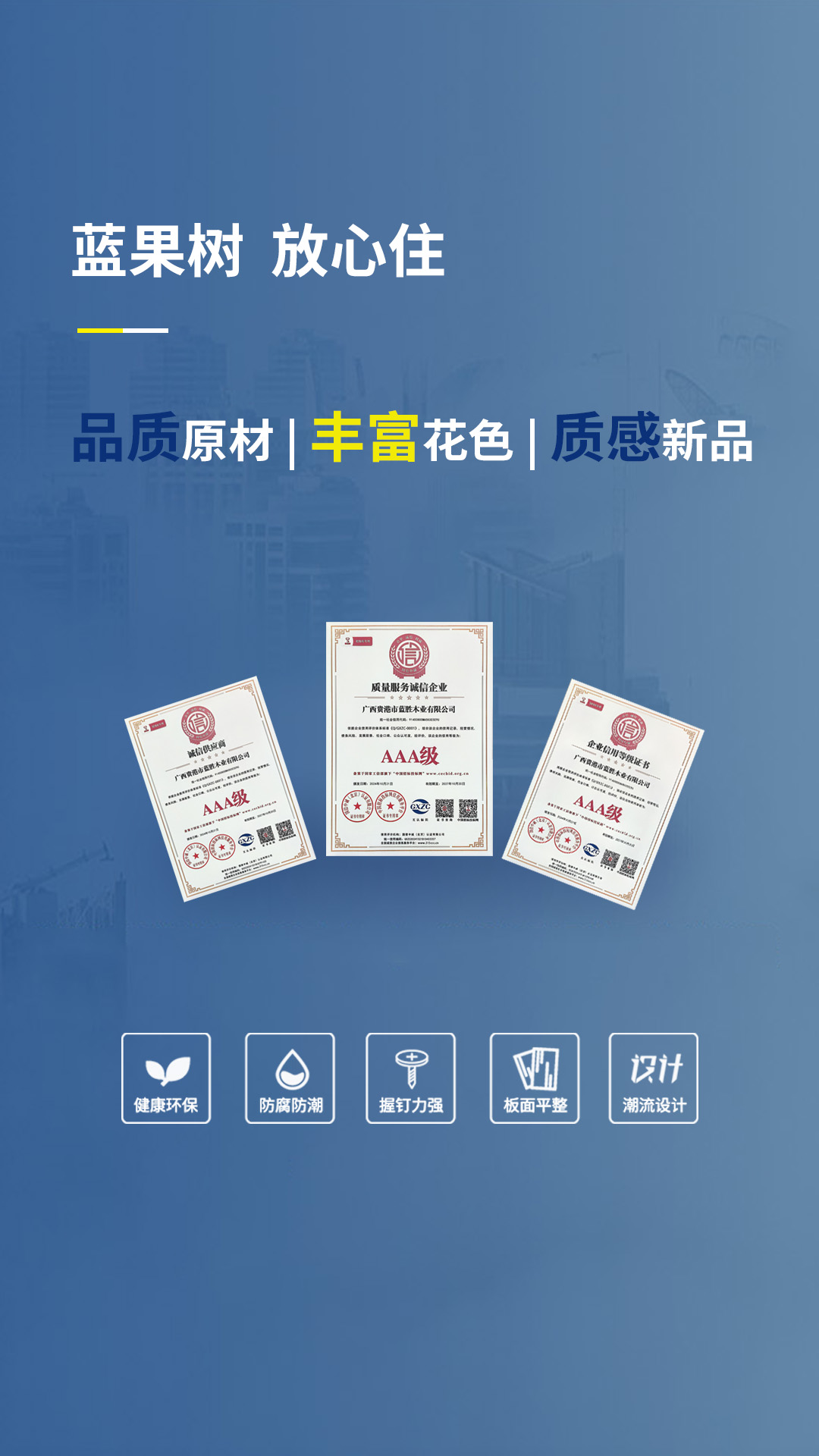 藍(lán)果樹板材為廣西藍(lán)勝新材料集團(tuán)有限公司旗下新型環(huán)保高新技術(shù)品牌,公司以板材研發(fā)及生產(chǎn)高品質(zhì)產(chǎn)品為發(fā)展方向,擁有100條生產(chǎn)線,年產(chǎn)50萬立方米生態(tài)免漆家具板。